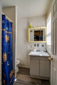 The property is uniquely configured with two separate living spaces. The front unit features a well-appointed one-bedroom apartment complete with its own kitchen and bathroom, providing a comfortable and private setting ideal for rental income or personal use.