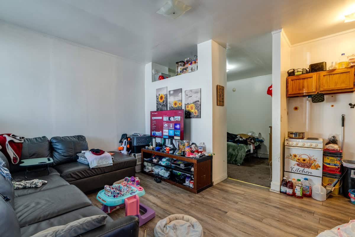 The property is uniquely configured with two separate living spaces. The front unit features a well-appointed one-bedroom apartment complete with its own kitchen and bathroom, providing a comfortable and private setting ideal for rental income or personal use.
