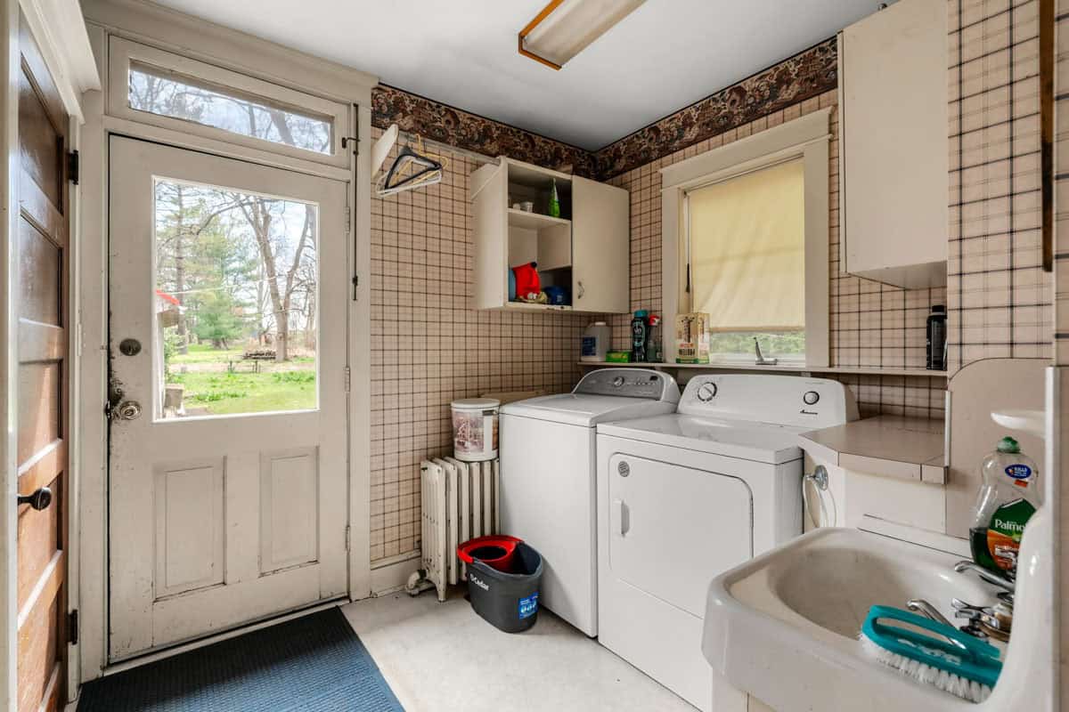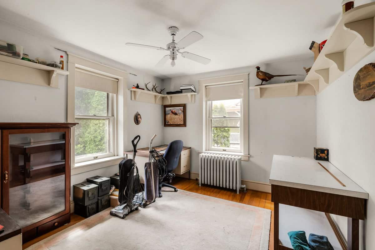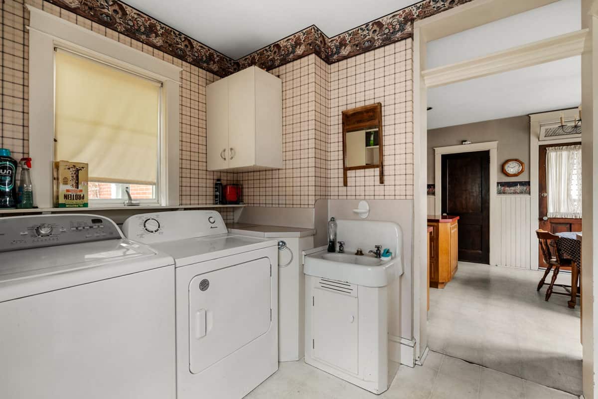 The accommodation is complemented by well-proportioned bedrooms, multiple utility spaces and bathrooms across the home, creating a strong foundation for restoration, renovation or future value-adding improvements. Downstairs, the basement offers extensive storage and workshop capacity, while outside the property continues to impress with a sizeable yard, established trees, open lawn areas and a detached garage/outbuilding that adds further practicality and potential.